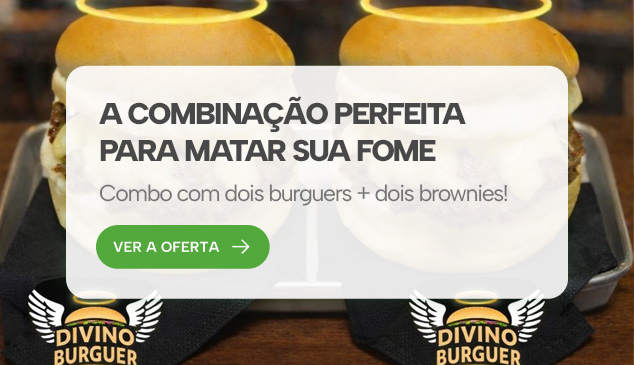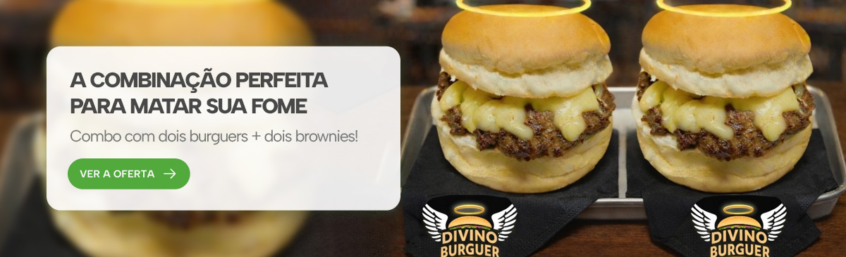 DIVINO BURGUER: combo com 2 divino burguers + 2 mini brownies, válido para tele-entrega*