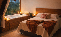 - Para tornar a estadia ainda mais especial, o chalé dispõe de uma banheira de hidromassagem dupla e uma agradável área de lazer, ideal para relaxar e aproveitar cada momento a dois.