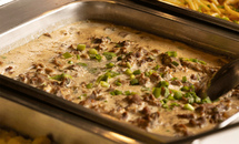 - Buffet livre com um variado cardápio, arroz e feijão com aquele tempero especial, saladas, massas, risotos, acompanhamentos, carnes e sobremesas.