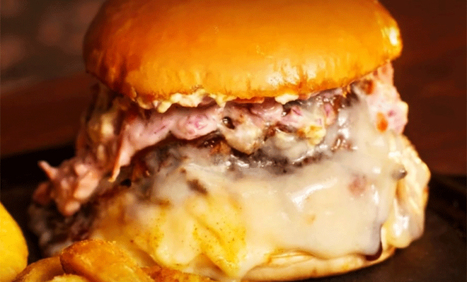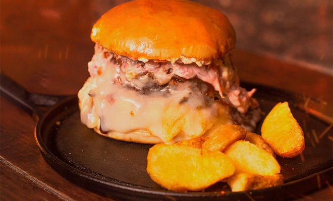 - PULLED PORK: hambúrguer de carne defumada suína (360g), no estilo americano, com queijo mussarela, salada coleslaw, maionese defumada e molho bbq, com acompanhamento de fritas (palito).