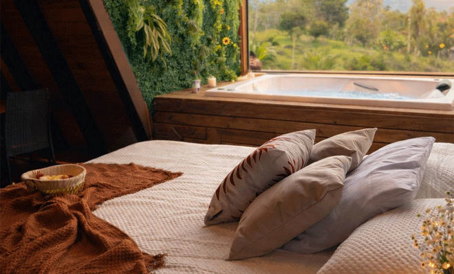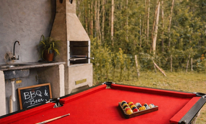 - Para tornar a estadia ainda mais especial, o chalé dispõe de uma banheira de hidromassagem dupla e uma agradável área de lazer, ideal para relaxar e aproveitar cada momento a dois.