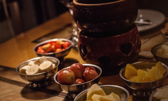 - Na sequência de fondue é cuidadosamente preparada para proporcionar uma experiência inesquecível. Iniciando com um fondue de queijo cremoso e delicioso mais acompanhamentos de batatinha baby, pão, almôndega, polentinha frita, brócolis, cenoura e goiabada.