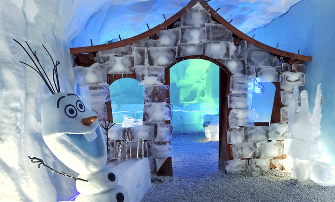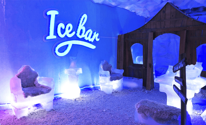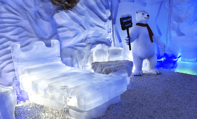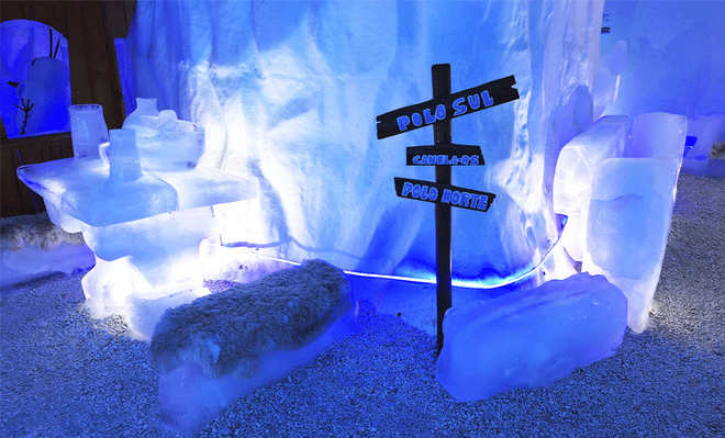 - Esculturas esculpidas em gelo como: sofá, mesa, cama e até um trenó, onde você terá total interação.