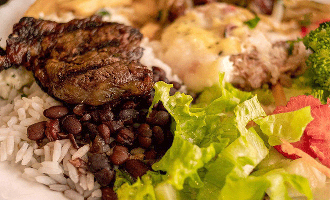 - Buffet livre com um variado cardápio, arroz e feijão com aquele tempero especial, saladas, massas, risotos, acompanhamentos, carnes e sobremesas.
