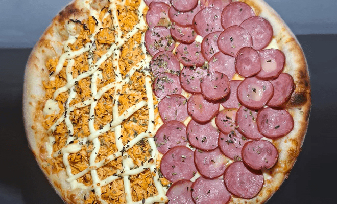 SUPER PIZZA PREMIUM: combo com pizza salgada grande com 12 fatias + pizza doce pequena com 6 fatias, com entrega grátis pra Içara e Balneário Rincão