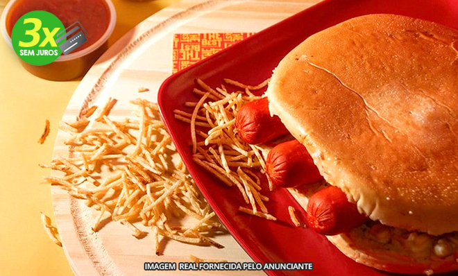 - HOT DOG PRENSADÃO SALGADO 17 CM: pão com 17cm, 3 salsichas, molho vermelho, maionese caseira, milho, ervilha, batata palha e queijo mussarela.