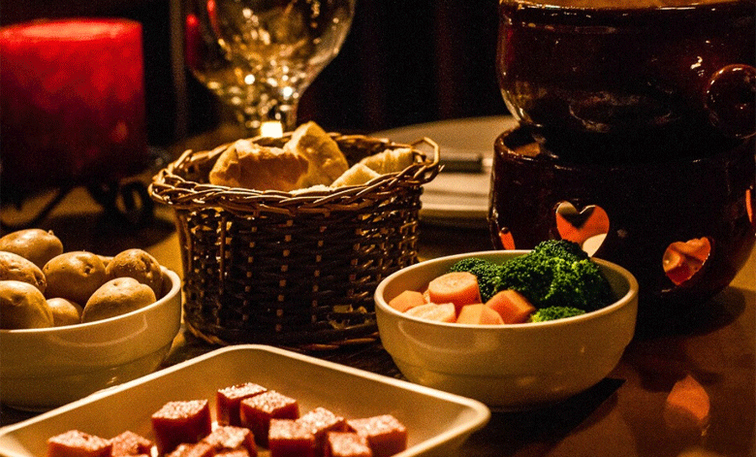 CHATEAU DOS PLÁTANOS: sequência de fondue completa e tradicional para almoço ou jantar
